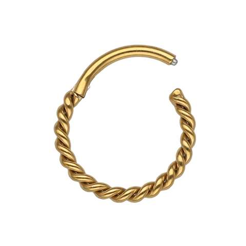 Segmentring/clicker in goud chirurgisch staal gedraaid motief