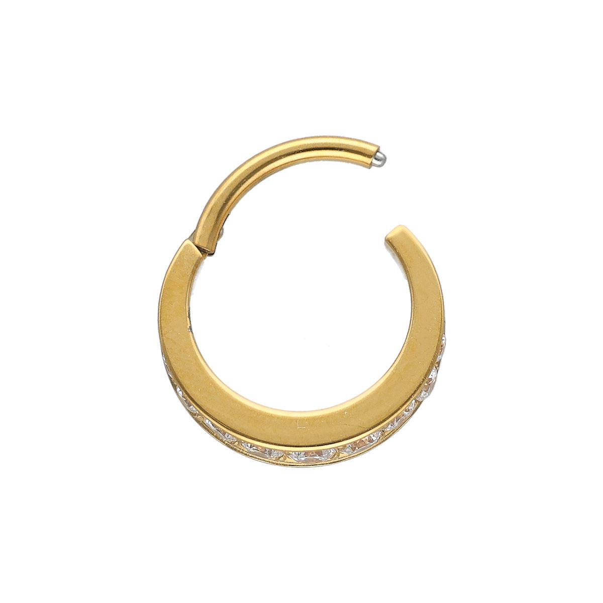 Segmentring/clicker in goud chirurgisch staal met witte kristallen aan de zijkant
