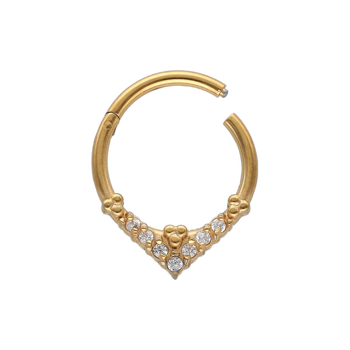 Segmentring/clicker in goud chirurgisch staal druppel bedekt met kristallen