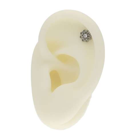 Labret/helix/tragus piercing in titanium F136 rond motief met een witte kristal