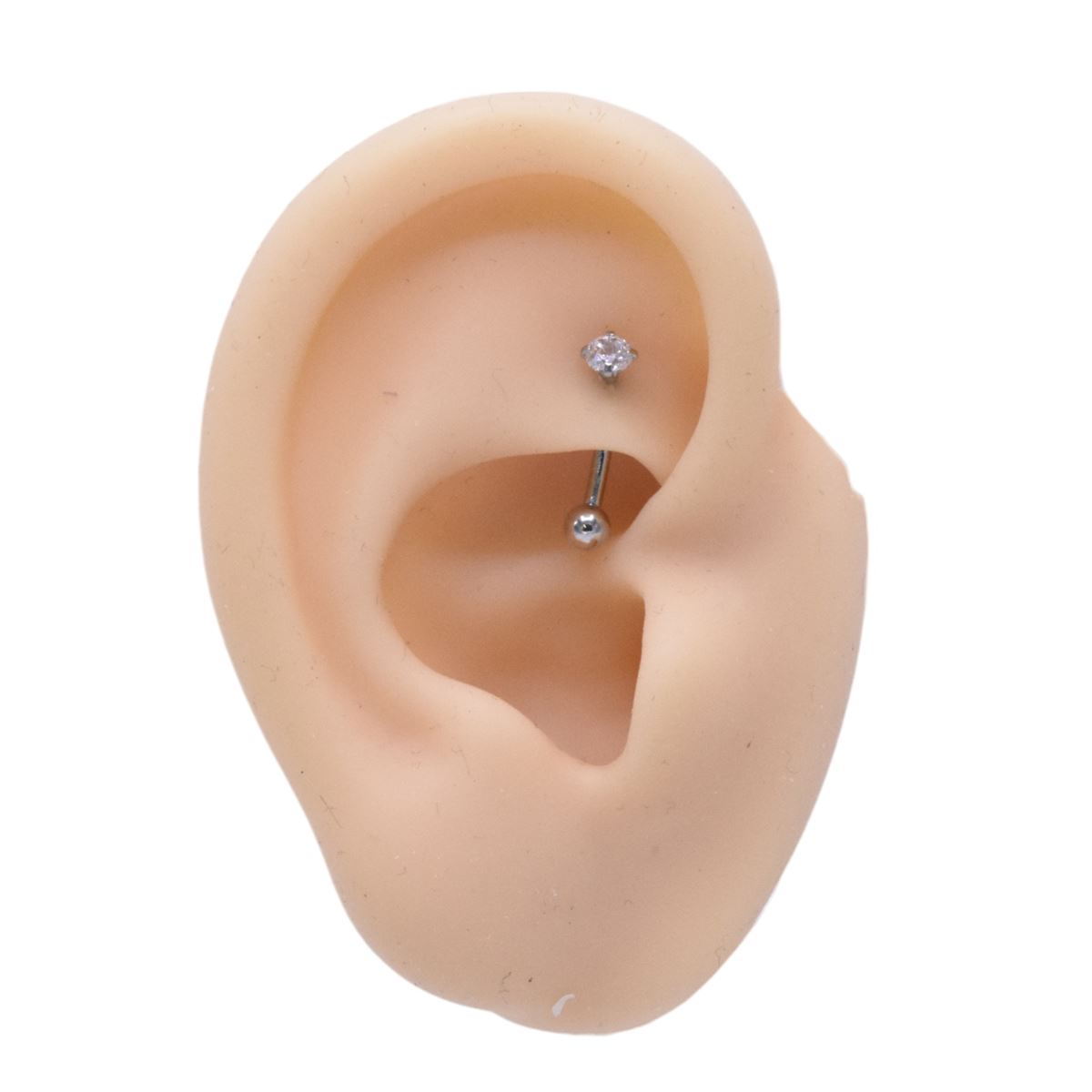 Deze Rook piercing heeft een staafdikte van 1.2 mm en een lengte van 8 mm. De kristal heeft een diameter van 3 mm.