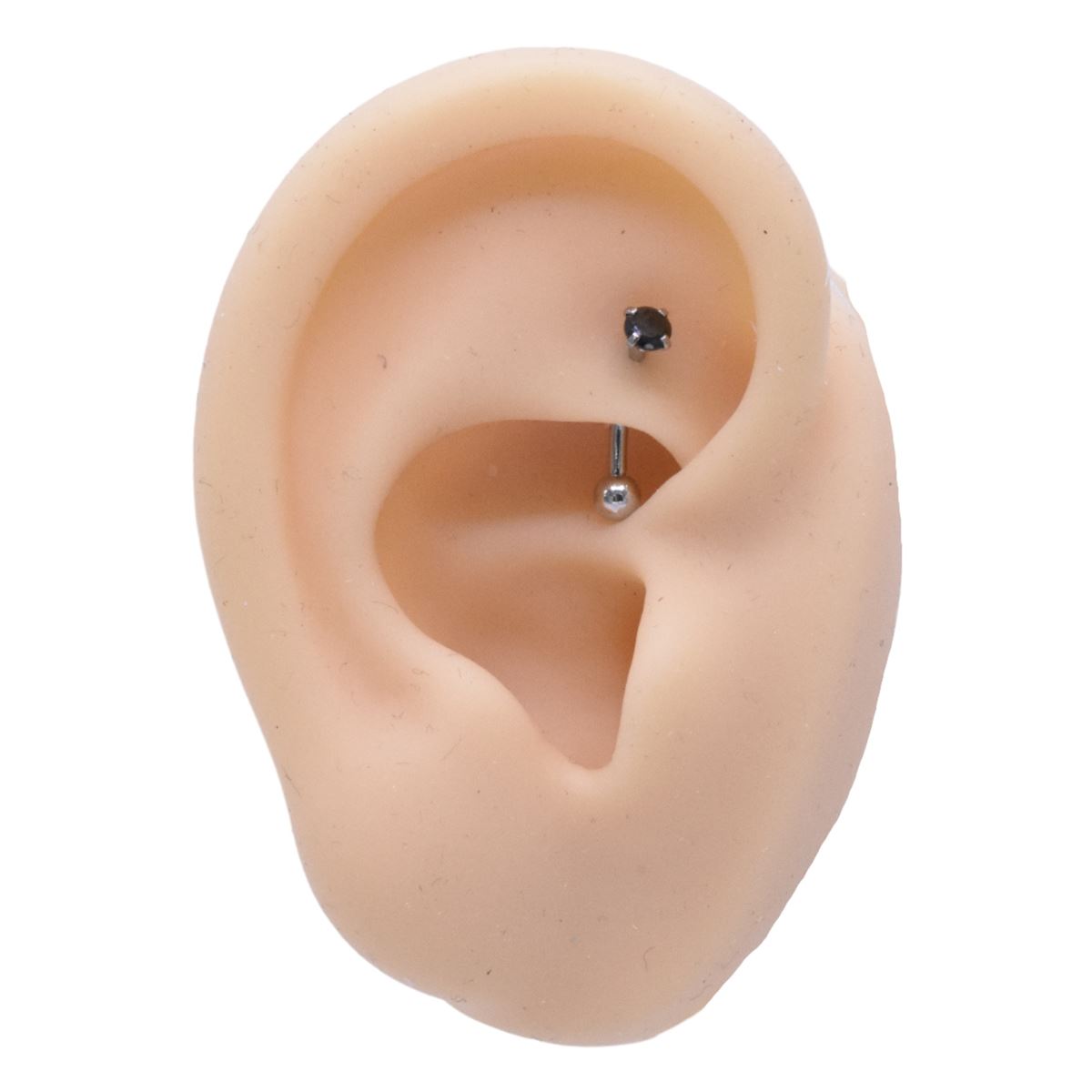 Deze Rook piercing heeft een staafdikte van 1.2 mm en een lengte van 8 mm. De kristal heeft een diameter van 3 mm.