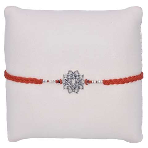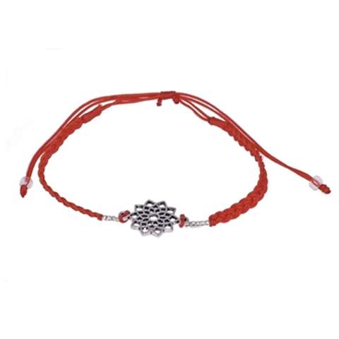 Rode kleurige armband met een bloem motief in het midden! Dit armbandje is verstelbaar met een pull-tie sluiting en past om iedere pols. Pull-tie sluiting betekent simpel gezegd dat je het makkelijk zelf om en af kunt doen door aan de koordjes te trekken! De diameter van de bloem bedraagt 14 mm.