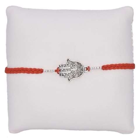Roodkleurige armband met een Fatima motief in het midden! Dit armbandje is verstelbaar met een pull-tie sluiting en past om iedere pols. Pull-tie sluiting betekent simpel gezegd dat je het makkelijk zelf om en af kunt doen door aan de koordjes te trekken! De lengte van de fatima hand bedraagt 20 mm.
