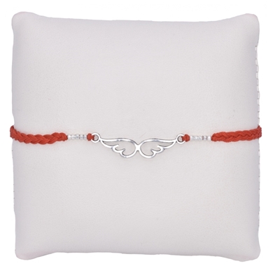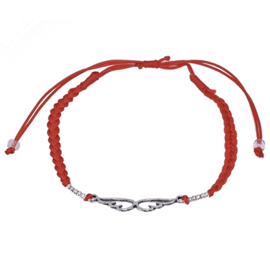 Roodkleurige armband met een vleugel motief in het midden! Dit armbandje is verstelbaar met een pull-tie sluiting en past om iedere pols. Pull-tie sluiting betekent simpel gezegd dat je het makkelijk zelf om en af kunt doen door aan de koordjes te trekken! De lengte van de vleugel bedraagt 25 mm.