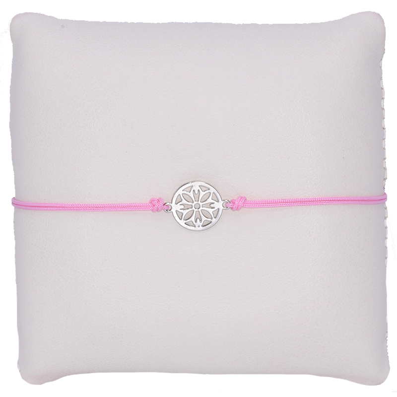 Roze koordarmband met een bloemmotief