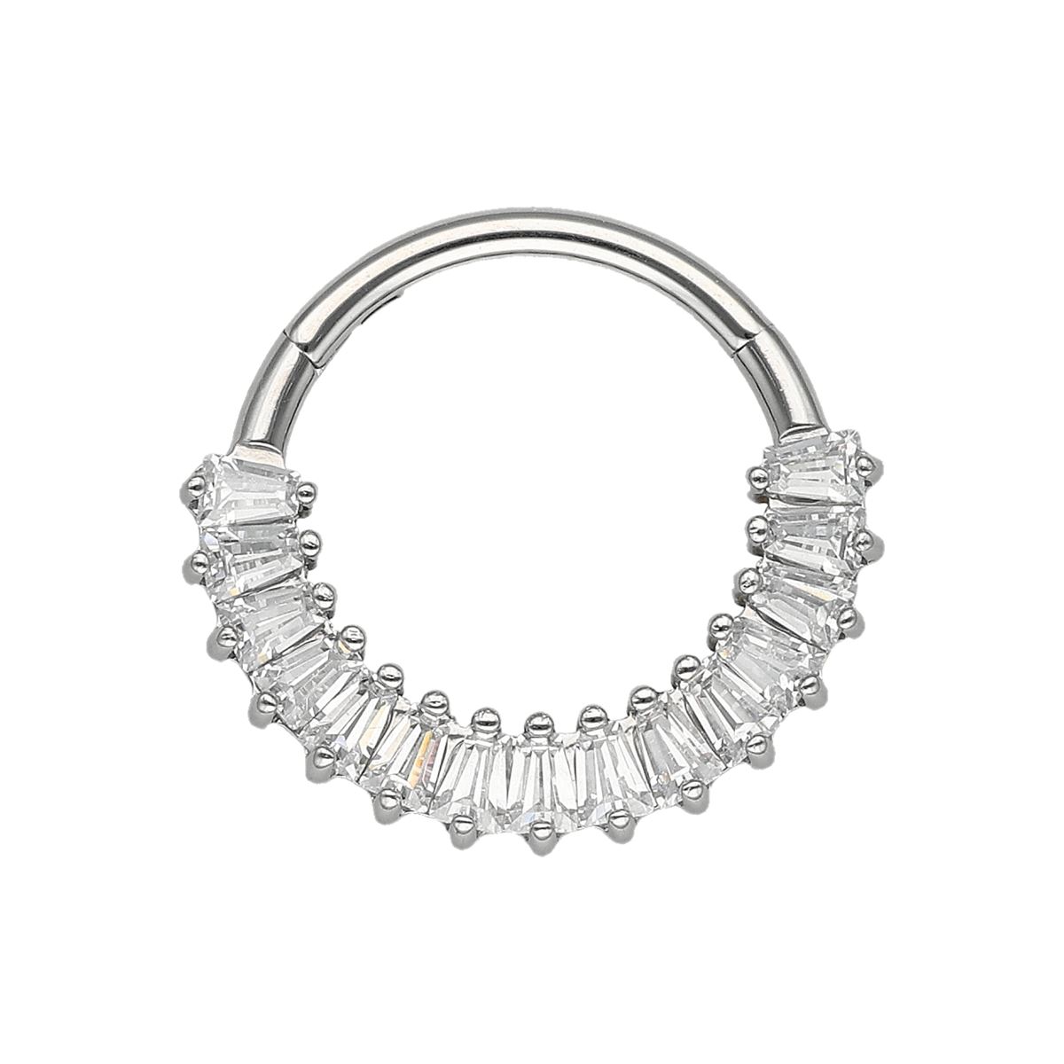 Segmentring/clicker in chirurgisch staal motief bedekt met witte kristallen