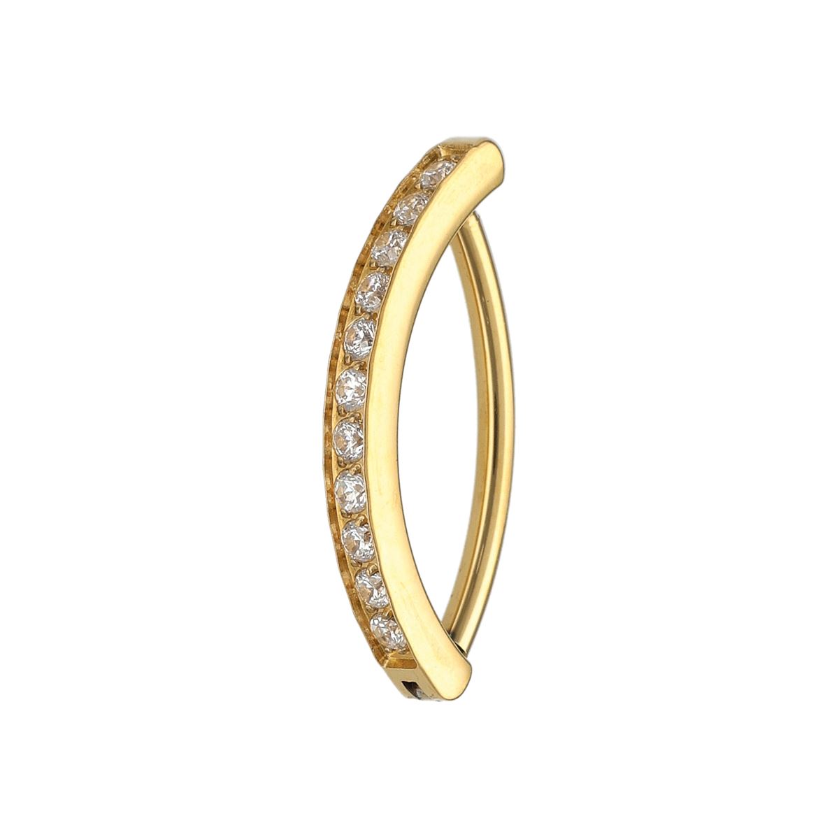 Segmentring clicker in goud chirurgisch staal bedekt met witte kristallen