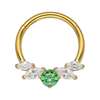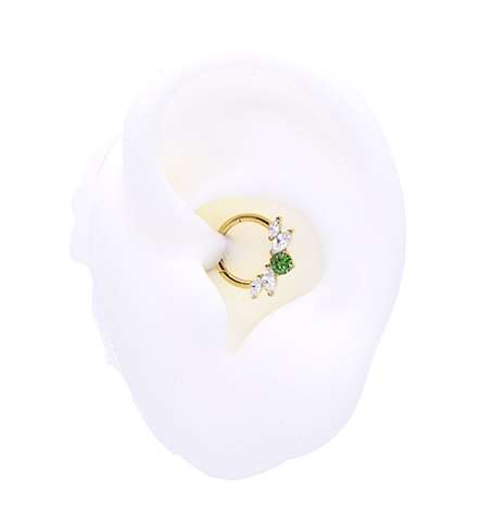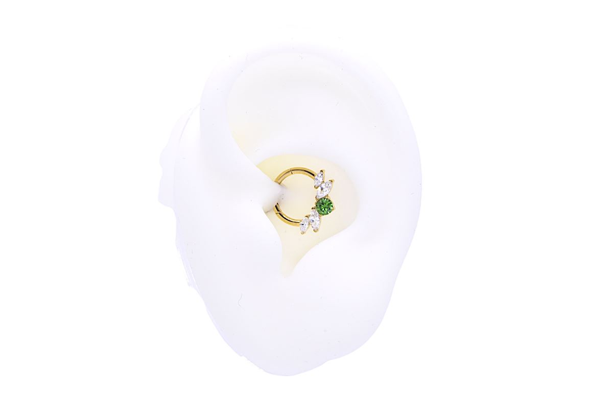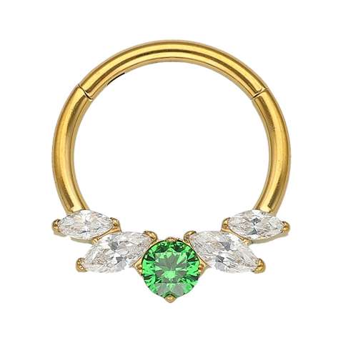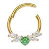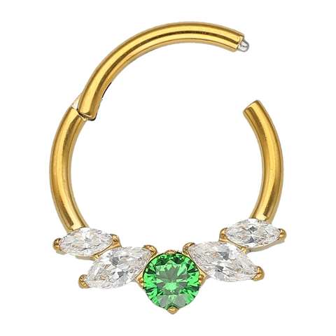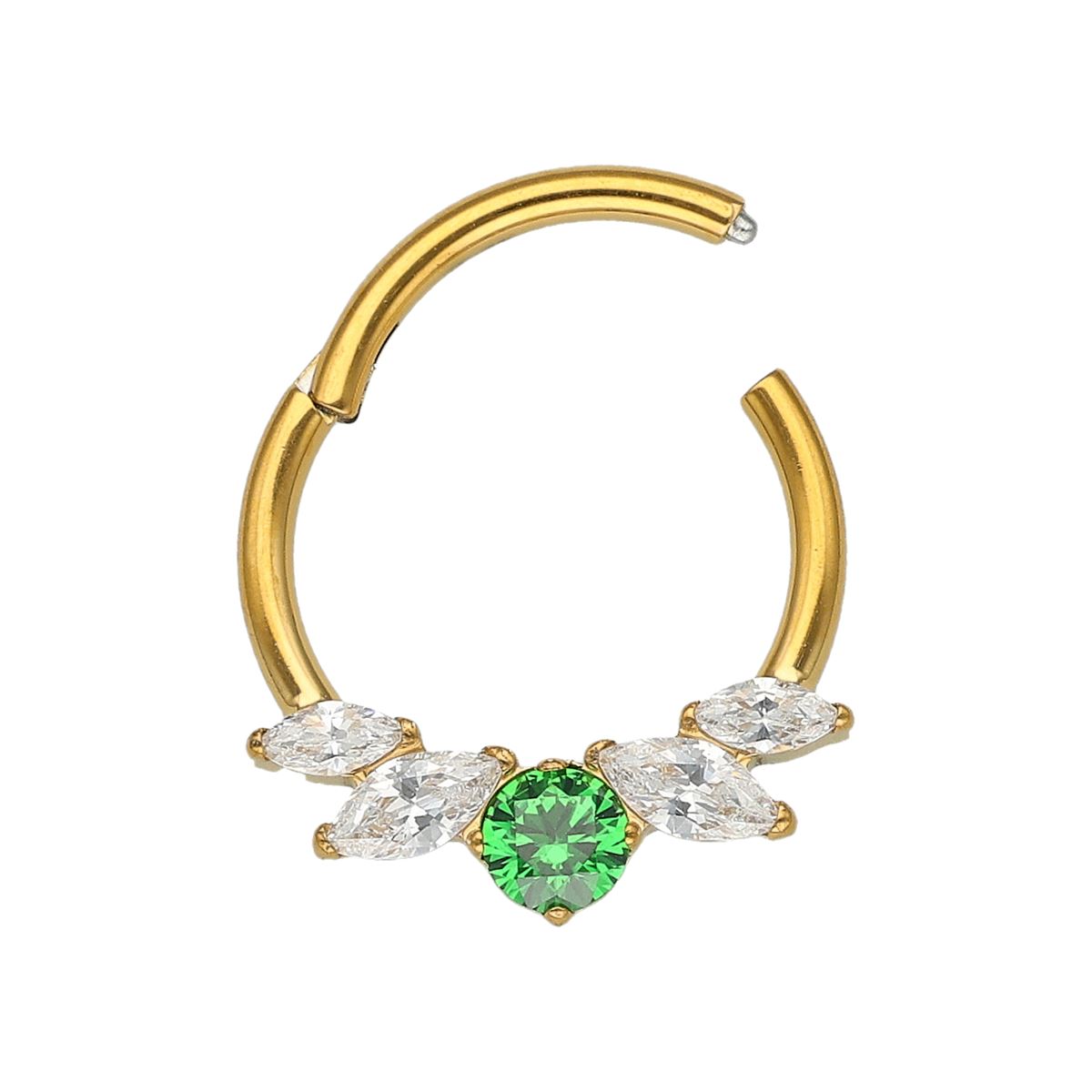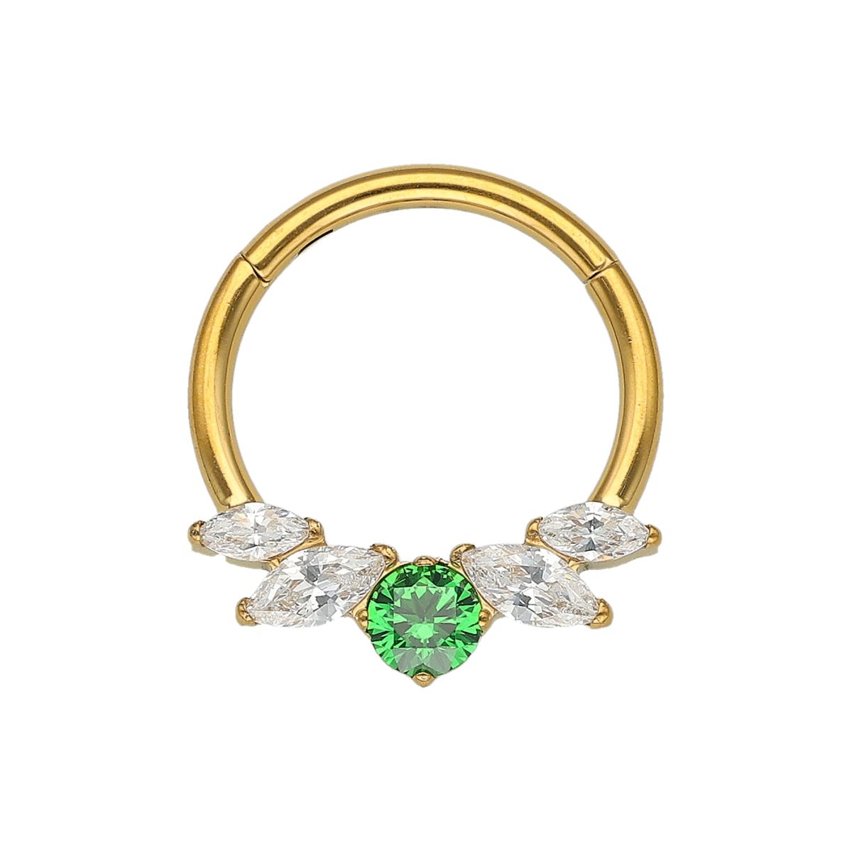Segmentring/clicker in goud chirurgisch staal met een groene kristal