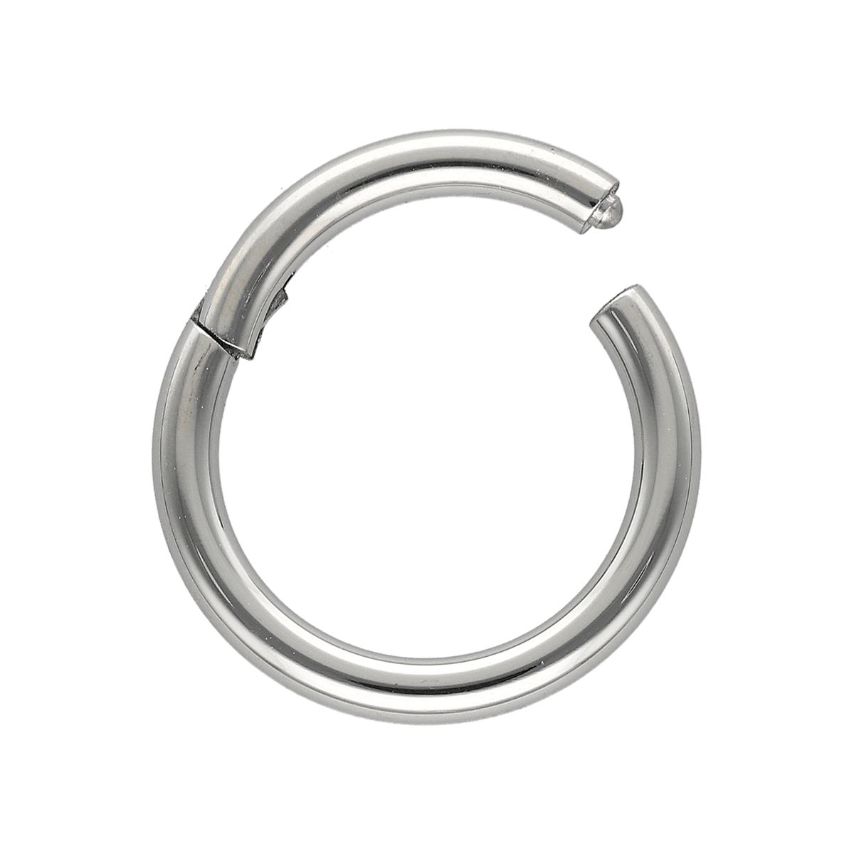 Deze speciale piercing is gemaakt van hoogwaardig Chirurgisch staal 316L. Het segment is bevestigd aan een scharnier, waardoor het gemakkelijk is om de ring te openen. De clicker piercings zijn geschikt voor gebruik in het septum en vele andere lichaamsgebieden (zoals het oor of intiem). De segmentring heeft een staafdikte van 2 mm en is te verkrijgen in de diameters 8 mm, 10 mm en 12 mm. Gemeten vanaf de binnenkanten.