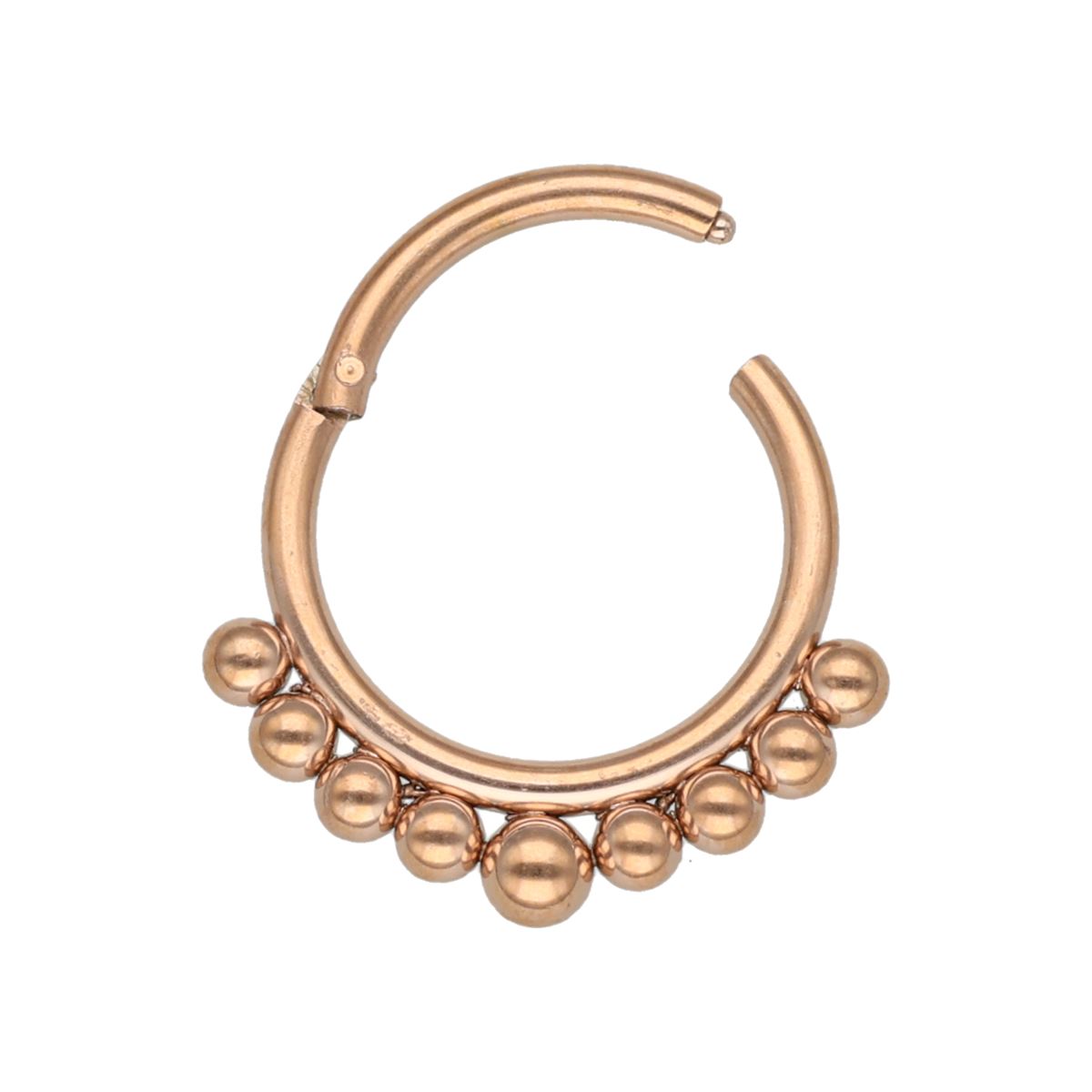 Segmentring in chirurgisch staal, rose goud scharnier met bolletjes