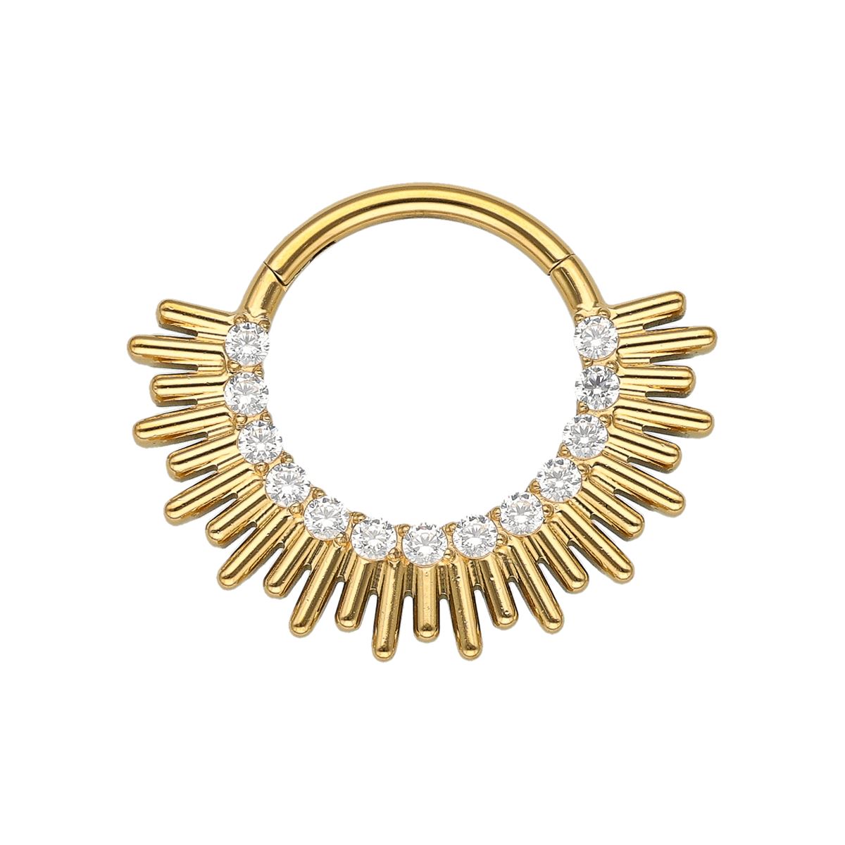 Segmentring in goud chirurgisch motief met pinnen en kristallen