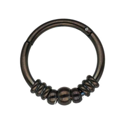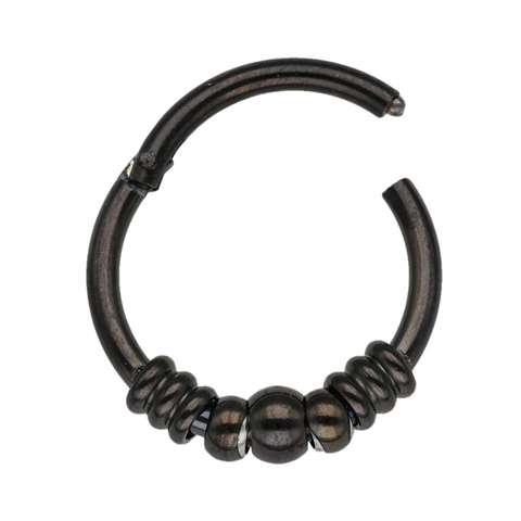 Segmentring in zwart chirurgisch staal, scharnier met 3 bolletjes