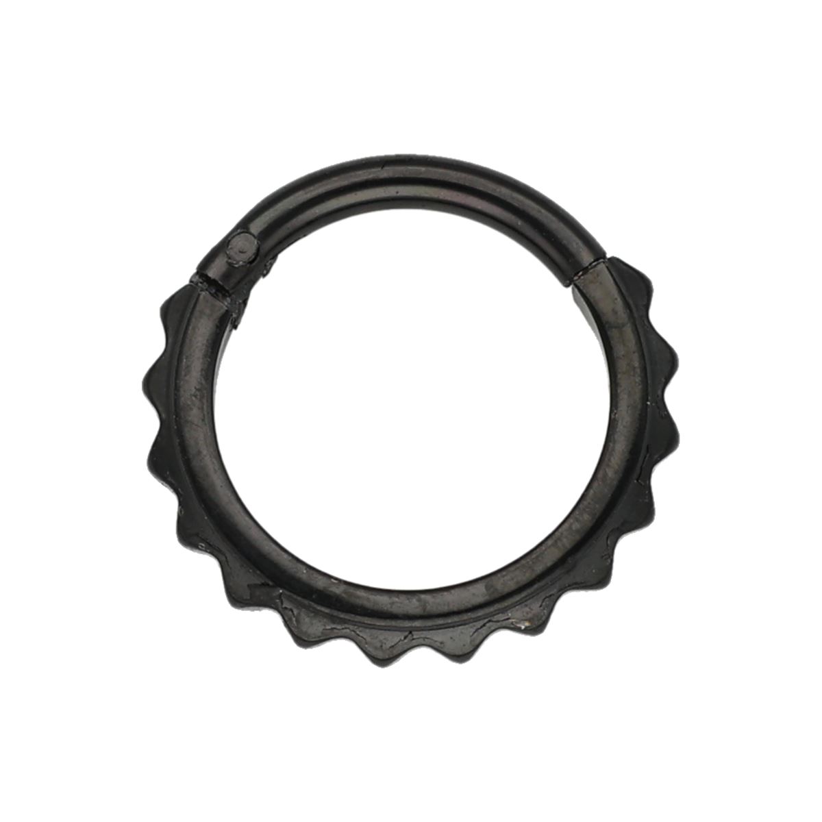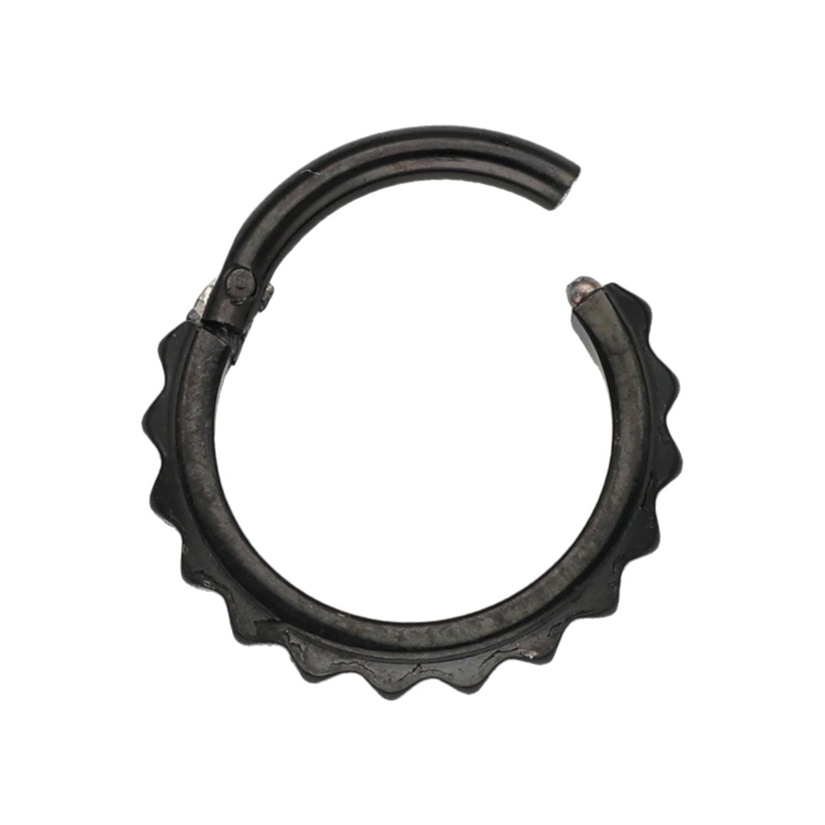 Segmentring in zwart chirurgisch staal, scharnier met kleine pinnetjes