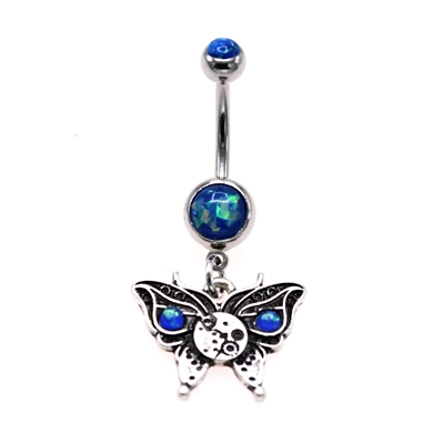 Navelpiercing in chirurgisch staal, hanger vlinder met turquoise opaal stenen