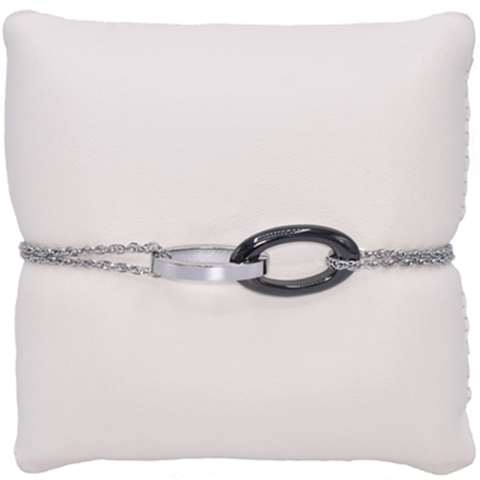 Stalen armbandje met 2 open ovale ringen, ene in staal en de tweede in donker grijs tungsten. Lengte van de ringen bedragen 23 mm.