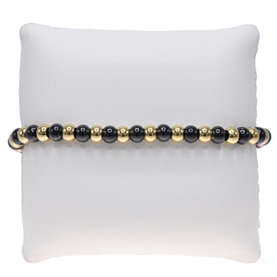 Stalen kralenarmband met gouden en zwarte bolletjes