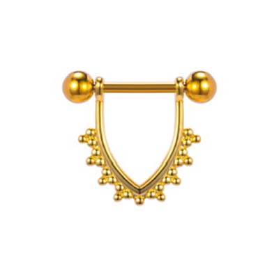 Tepelpiercing in chirurgisch staal, goudkleurig met kleine bolletjes