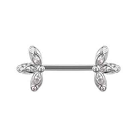 Tepelpiercing in chirurgisch staal-motief met verschillende witte kristallen