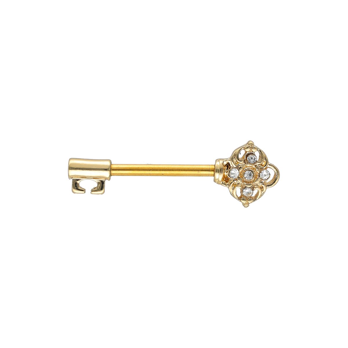 Tepelpiercing in goud chirurgisch staal, sleutel met verschillende witte kristallen