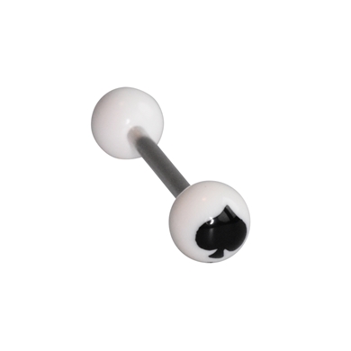 Tongpiercing in acrylic, balletje in het wit met schoppen