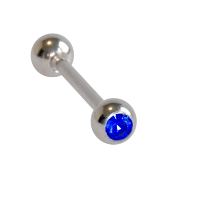 Tongpiercing in chirurgisch staal, bal met donker blauwe kristal