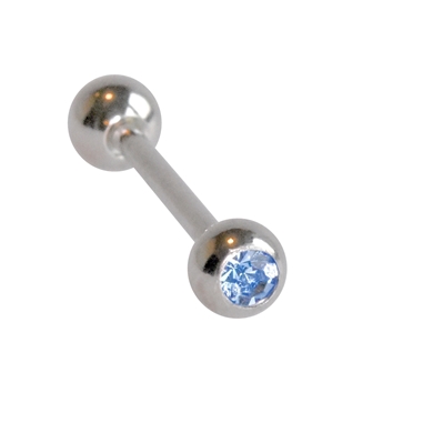 Tongpiercing in chirurgisch staal, bal met licht blauwe kristal