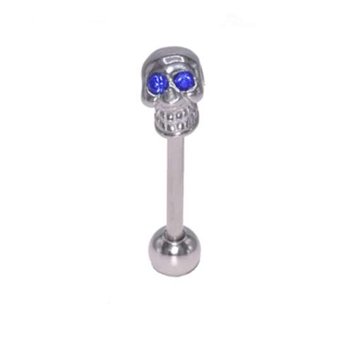 Tongpiercing in chirurgisch staal, doodskop met blauwe ogen