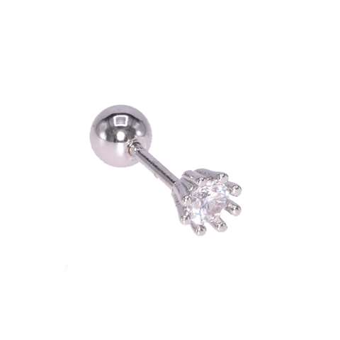 Tragus/helix piercing in chirurgisch staal, ronde "prong" setting witte kristal