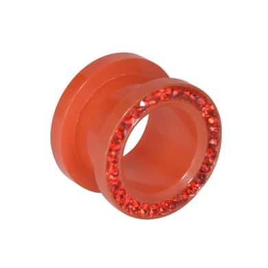Schroefbare tunnel in acrylic met kristallen in verschillende diameters, vanaf 3mm tot en met 16mm.