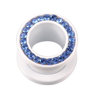 Tunnel in chirurgisch staal, wit met donker blauwe swarovski kristallen