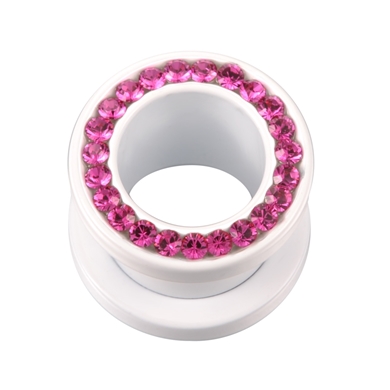 Tunnel in chirurgisch staal, wit met fuchsia swarovski kristallen