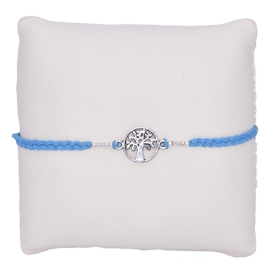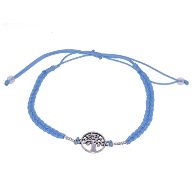 Turquoise gevlochten armband met een levensboom in het midden! Dit armbandje is verstelbaar met een pull-tie sluiting en past om iedere pols. Pull-tie sluiting betekent simpel gezegd dat je het makkelijk zelf om en af kunt doen door aan de koordjes te trekken! De diameter van de levensboom bedraagt 12 mm.