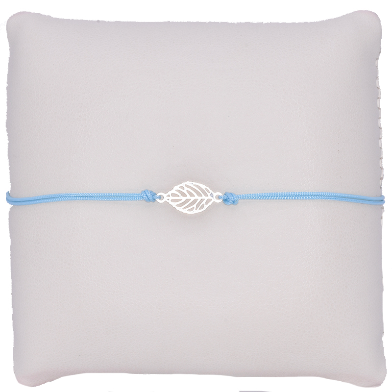 Turquoise koordarmband met een blad