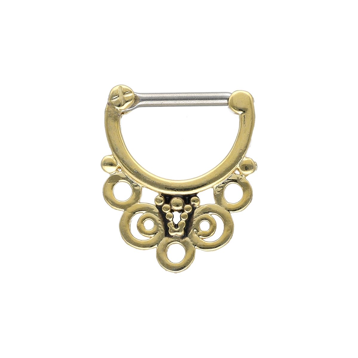 Dankzij een eenvoudig vergrendelingsmechanisme, met een ingebouwd scharnier, kan het sieraad gemakkelijk worden geopend en in het vertakkingskanaal worden gestoken. Gemaakt van hoogwaardig Chirurgisch staal 316L, met een gepolijst oppervlak, biedt het een zeer goede kwaliteit, textuur en een intense glans. Het artikel heeft een staafdikte van 1,2 mm en is te verkrijgen in een binnendiameter van 8 mm of 10 mm. De clicker piercings zijn geschikt voor gebruik in het septum en vele andere lichaamsgebieden (zoals het oor).