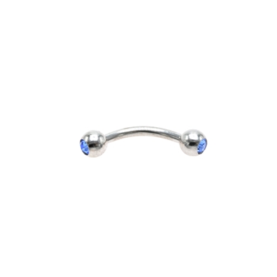 Wenkbrauw in chirurgisch staal met balletje en licht blauwe kristal