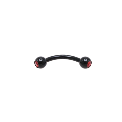 Wenkbrauw in zwart chirurgisch staal met balletje en rode kristal