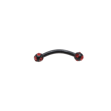 Wenkbrauw in zwart chirurgisch staal, multikristal rood